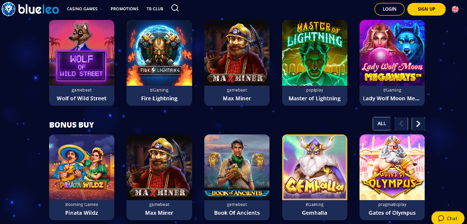 BetSoft, iSoftBet, Quickspin, and Thunderkick are among the few renowned vendors that BlueLeo casino collaborates with. Smaller ones are there as well, and they are just as interesting; among them are games by BGaming, Electric Elephant, Games Lab, Habanero, Jade Rabbit, NoLimit City, Playson, Print Studios, Reel Play, Relax Gaming, and Booming Games, among others.