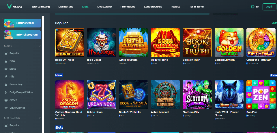 Even the most picky gamers will find something to their liking within Vave's unimaginably extensive game library. Games like Cash-a-Cabana, Tales of Silver Megaways, Rotten, Power of Sun: Svarog, Rex The Hunt!, and countless more have just been released among the thousands of slots available.