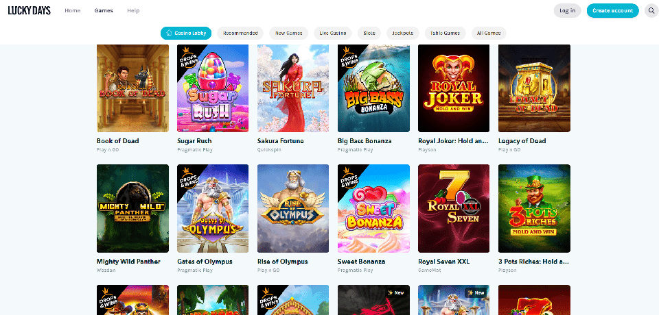 More than 2200 games from multiple genres are available on Lucky Days right now. Of course, slots are the most numerous type of games here. Some of our favourites include Dead or Alive II, Final Countdown, Ancient Fortunes: Zeus, Contact, Rockabilly Wolves, Pirates' Plenty, and Phoenix Reborn.