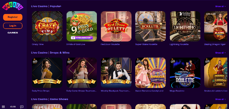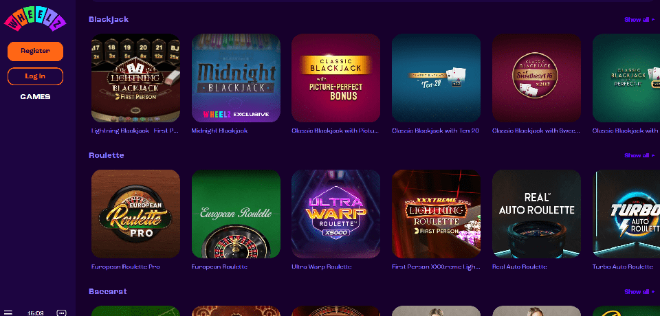 Wheelz worked with numerous well-known game developers, including iSoftBet, Red Tiger, Thunderkick, Pragmatic Play, Play'N Go, Big Time Gaming, Iron Dog Studio, and Quickspin. Various smaller developers like Rabcat, No Limit City, Foxium, 1×2 Gaming, Just For The Win, Booming Games, Triple Edge Studios, Push Gaming, Fantasma, Relax Gaming, All 41 Studios, Gamomat, Pulse 8 Studios, Inspired Gaming, Golden Hero, and others power their games as well.