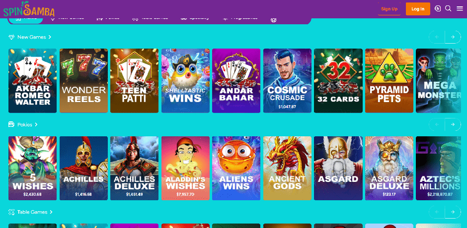 SpinSamba offers approximately 200 games, primarily video slots, with a selection of card and table games, as well as scratch cards. Players can enjoy popular titles such as Casino Hold 'Em, Texas Hold 'Em, Roulette (European and American variants), Pai Gow Poker, Craps, and Blackjack. However, it's worth noting that not all games offer demo versions, requiring players to wager real money.