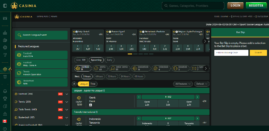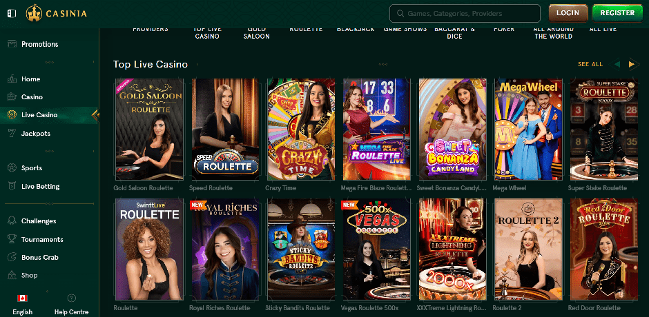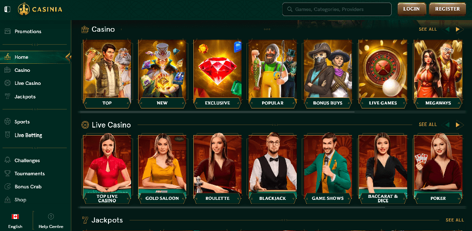 If you are looking for a slot machine, table game, or live dealer option, Casinia has you covered with around 100 different providers. There are innumerable chances to discover smaller, less well-known producers within the massive collection of over 4,000 titles, which includes not only the most well-known games from the most prominent suppliers but also all of the world's most famous titles. Select "Games" from the menu on the left to go to the games catalogue. The most popular sections of the casino, such as "Live Games," "Table Games," "Slots," and a few more, are conveniently located on the left-hand menu. Once you are in the catalogue, use the top navigation bar to filter the results by provider and search by title. The categories for that casino are located just below that. The following sections are provided: "Game Hall," which contains the complete catalogue of games offered by the casino; "Top," which contains the most played and popular games at the casino; "New," which offers the opportunity to try out the most recent titles in the iGaming field; "Popular," which contains the casino's most beloved games; "Live Casino," which contains a vast catalogue of nearly a thousand live games, developed by companies like Evolution and Ezugi; "Table Games," which contains num If you are having problems deciding which game to play, you can get a random selection by clicking the "Feel Lucky" button that appears beside the categories.