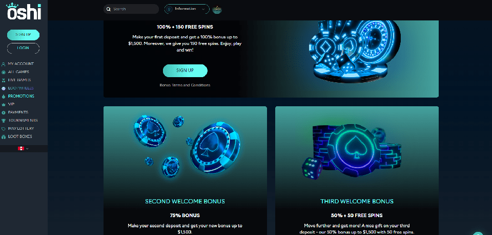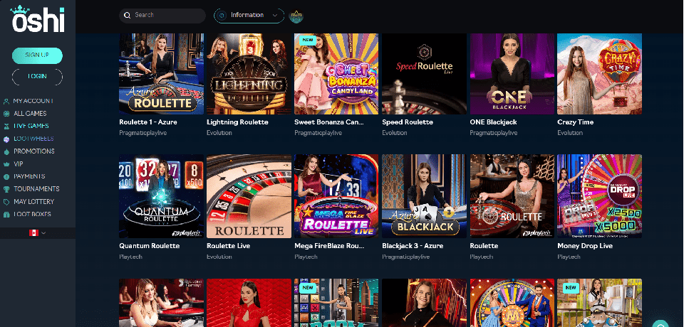 All of the games at Oshi Casino are designed to provide the greatest possible experience for you, the player. With over 8,000 games to choose from, each one boasts top-notch graphics and plenty of chances to win big. You can expect both variety and excellence. You can also play in real time with other players in the live casino if you are in the mood for some extra luck.