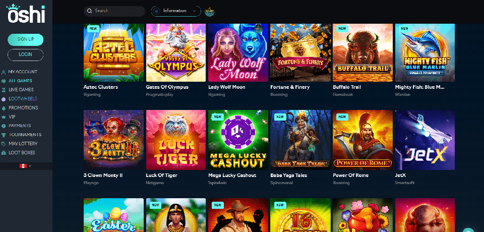 Even though Oshi Casino's website seems like it was built using high-end software, the navigation is still rather straightforward.