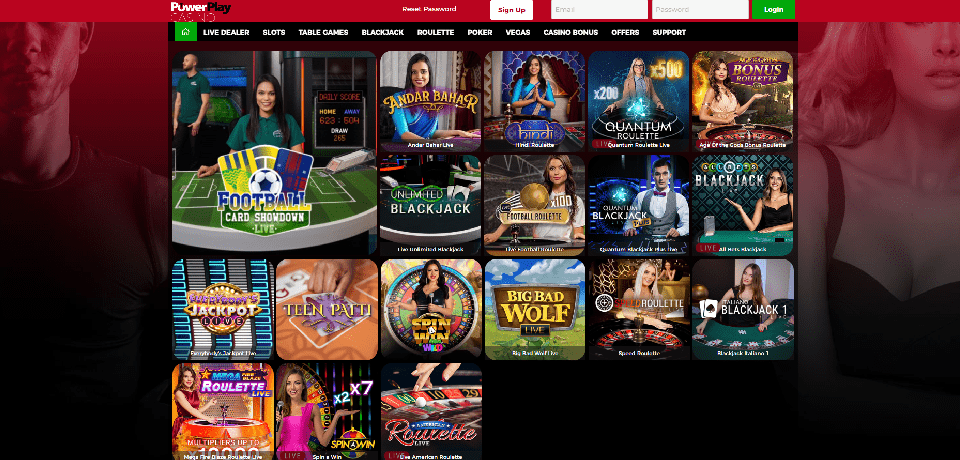 The excitement of real-life casino betting is also available to players at PowerPlay's live online casino. This area, powered by Evolution, allows users to play poker, blackjack, roulette, baccarat, and other traditional games with a live dealer. For a more realistic gaming experience, players can engage with the dealers while also seeing them physically deal and shuffle cards. This is a remarkable expansion of PowerPlay's offerings for a modest gambling establishment.