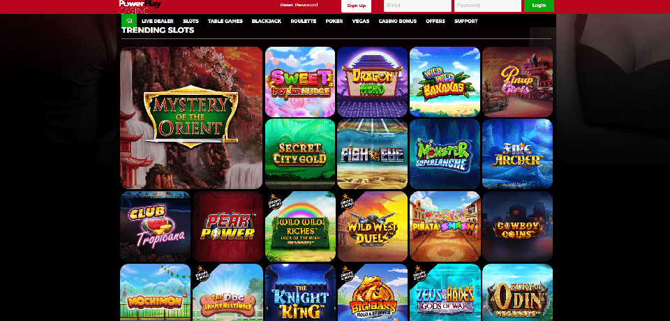 There are more than 250 games available at PowerPlay Casino. Slot machines, the casino's most popular game, sit alongside table games and live dealer options in the lobby. We were pleasantly surprised to learn that Evolution Gaming powers the live casino in addition to the majority of the games from Pragmatic Play and Microgaming.