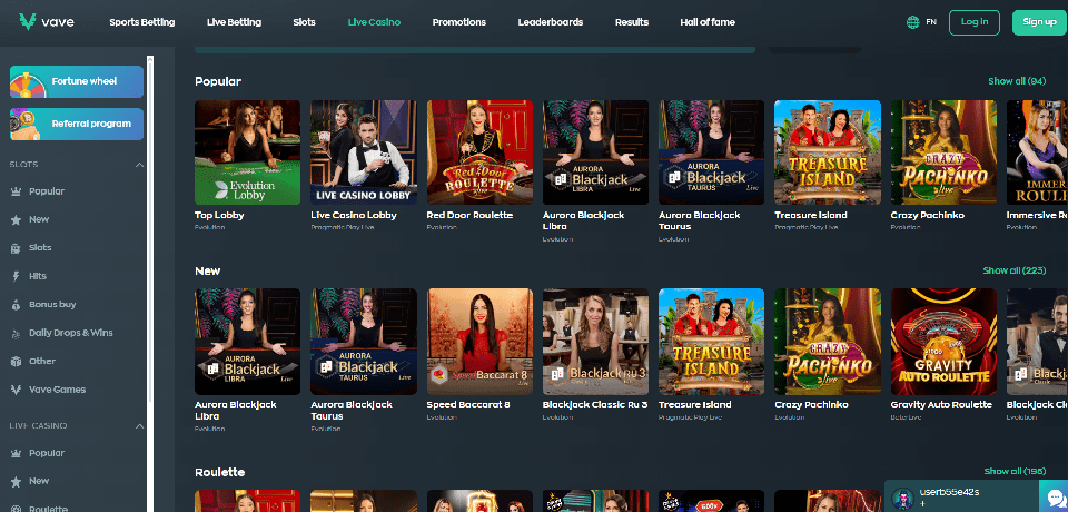 We discovered the names of significant providers in the business, including Ainsworth, Big Time Gaming, Betsoft, Evolution, iSoftBet, Iron Dog Studio, Microgaming, Netent, Play'N Go, Thunderkick, and Yggdrasil, through Vave's collaboration with more than 100 suppliers. Wazdan, Spribe, Relax Gaming, Playson, Gamzix, Endorphina, and a plethora of other smaller but just as reputable creators follow.