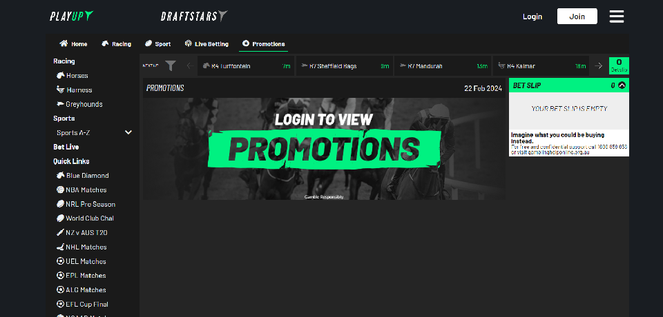 You can use the site's navigation menu to choose the sport or event you wish to wager on at PlayUp. You may check all of your PlayUp promos by clicking the promotions tab, and the odds and markets for the event you have chosen will be displayed on the main area of the website. In the account area at the top of the website, you can see all the details about your account, payments, and bonuses.